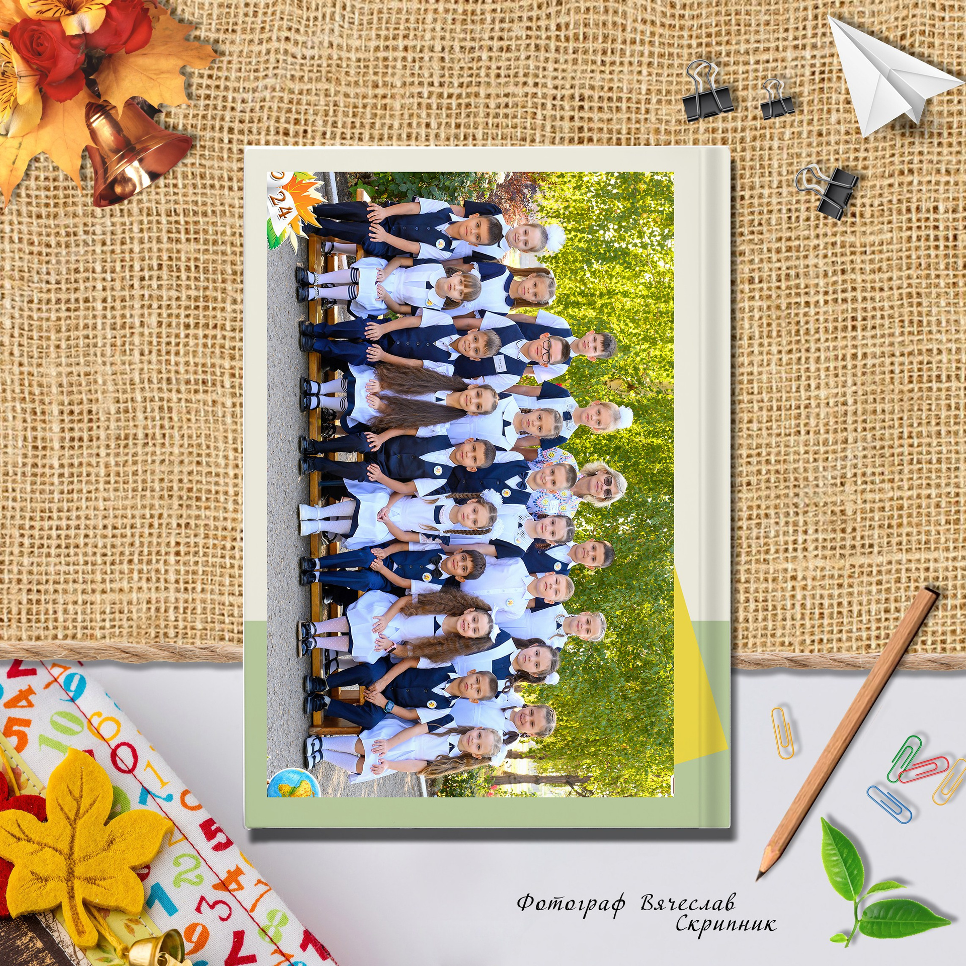 - разворот: виньетка класса с подписанными именами и фамилиями