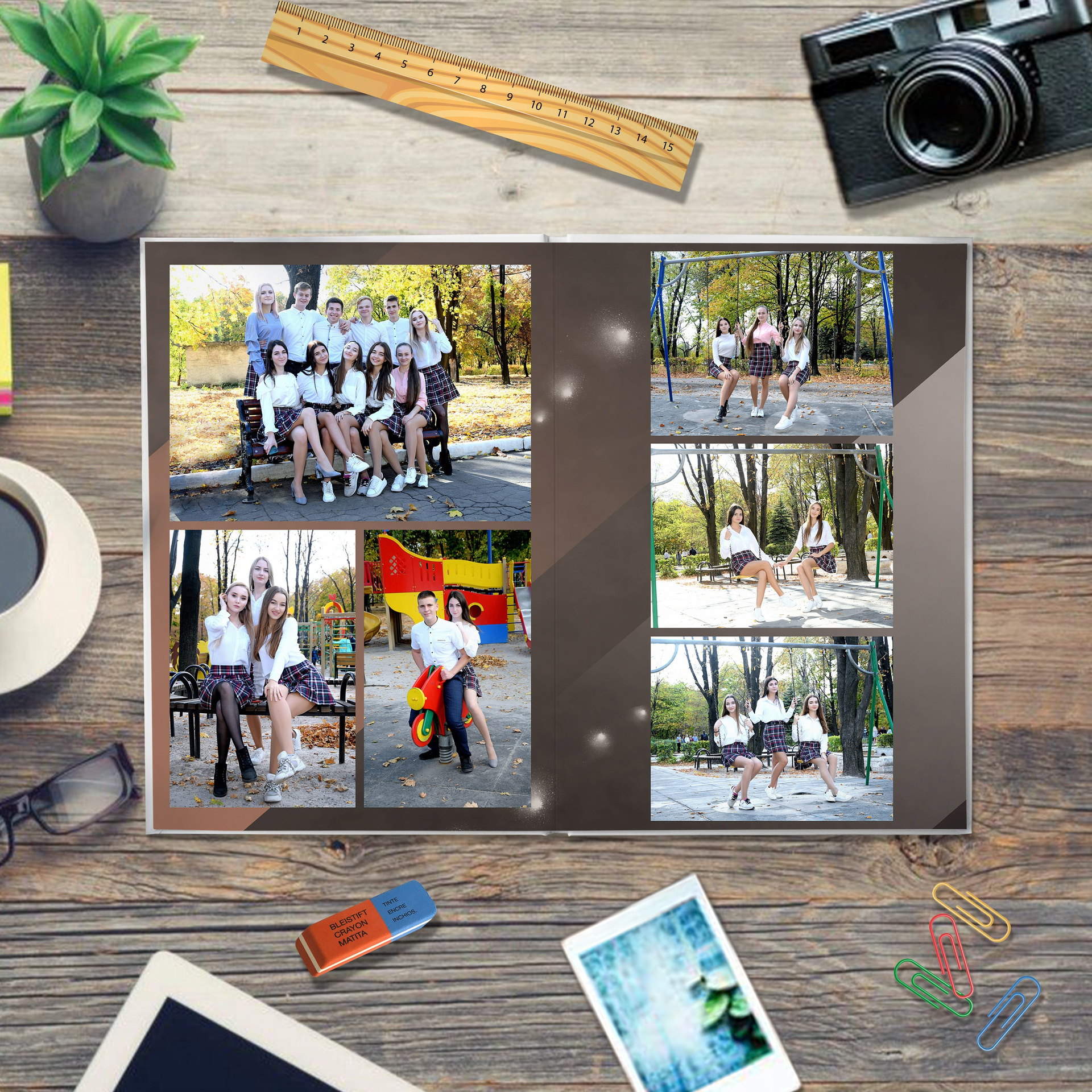 - две фотосъёмки в двух различных локациях на выбор (парк и школа)