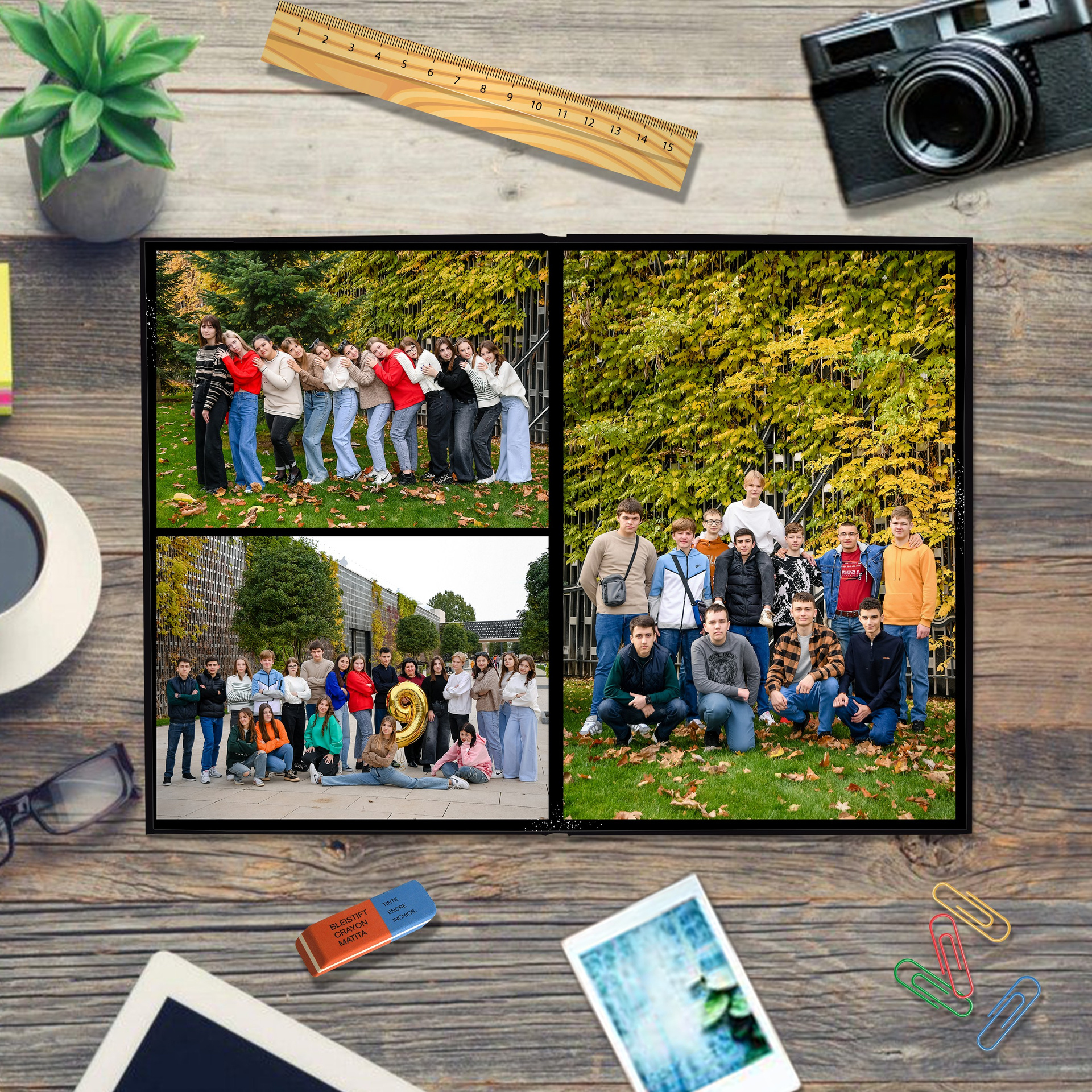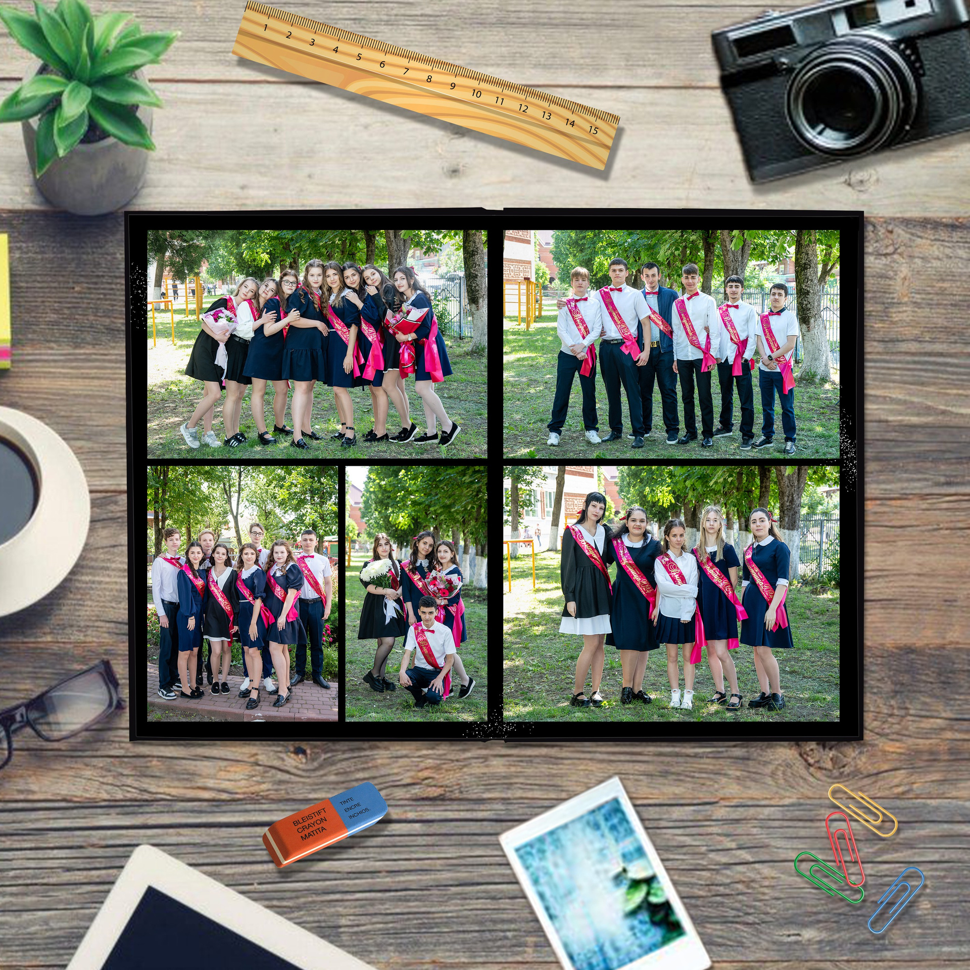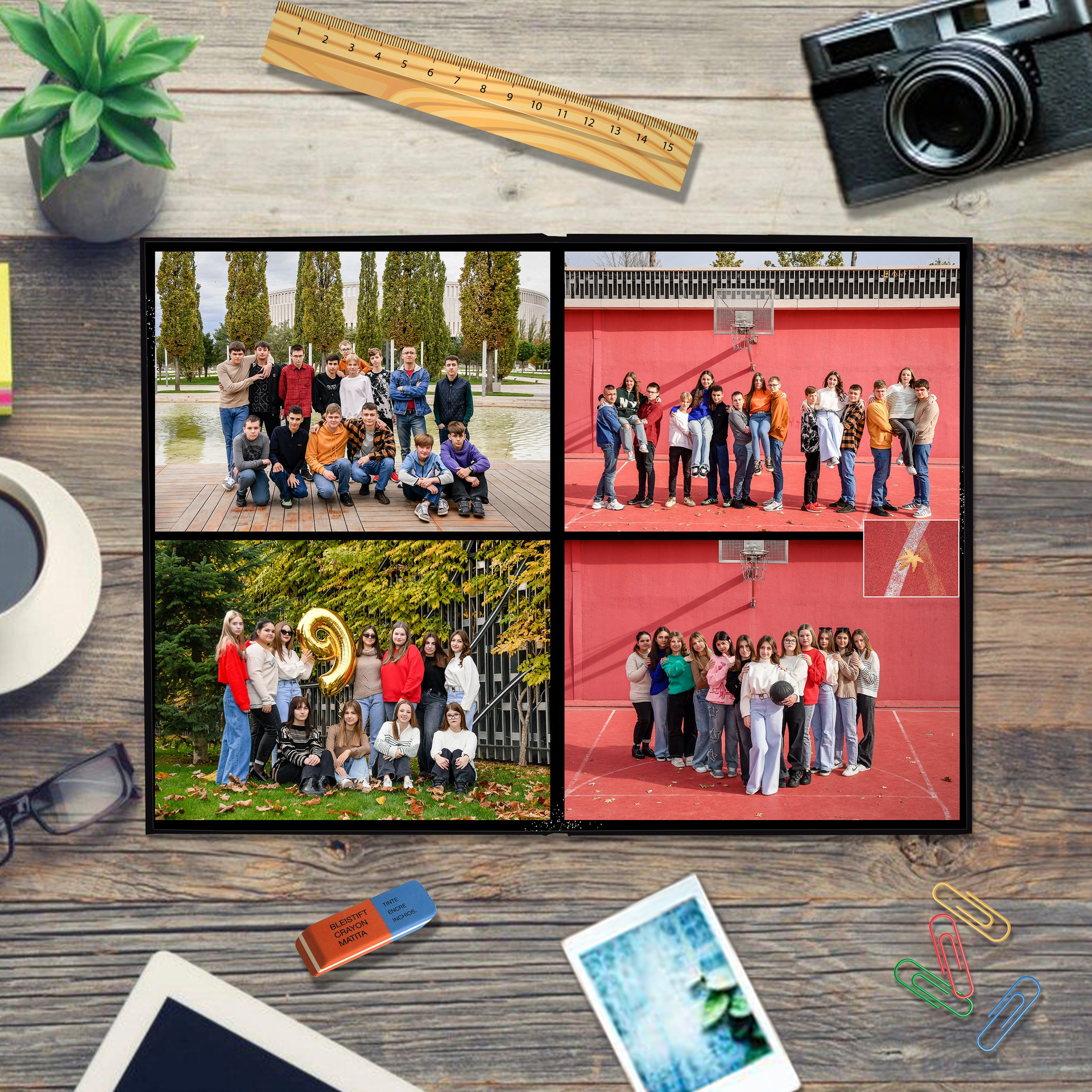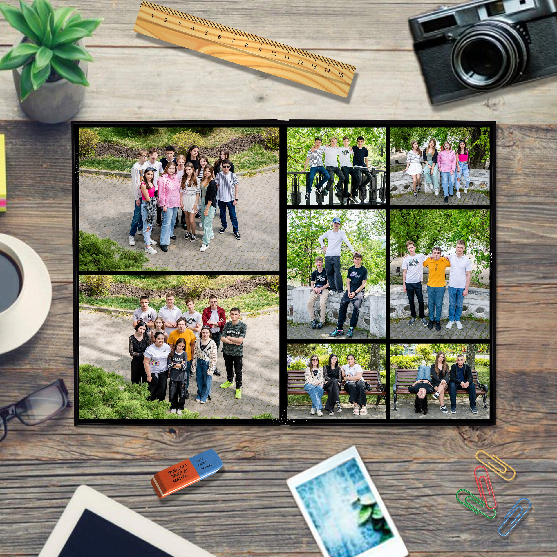 - одинадцатый-тридцатый: групповые коллажи и общие фотографии на весь разворот