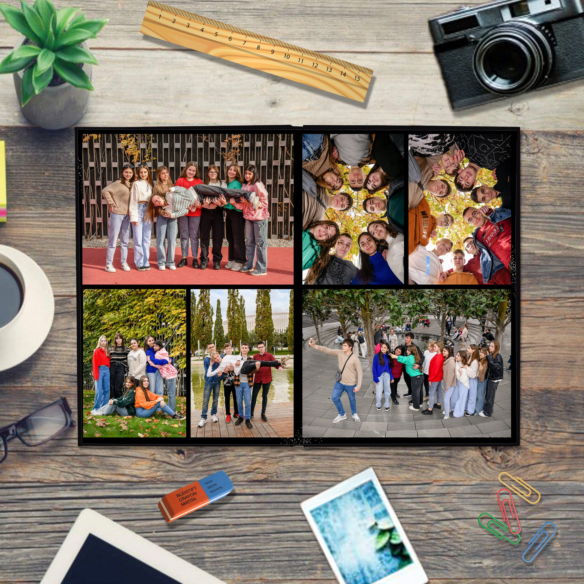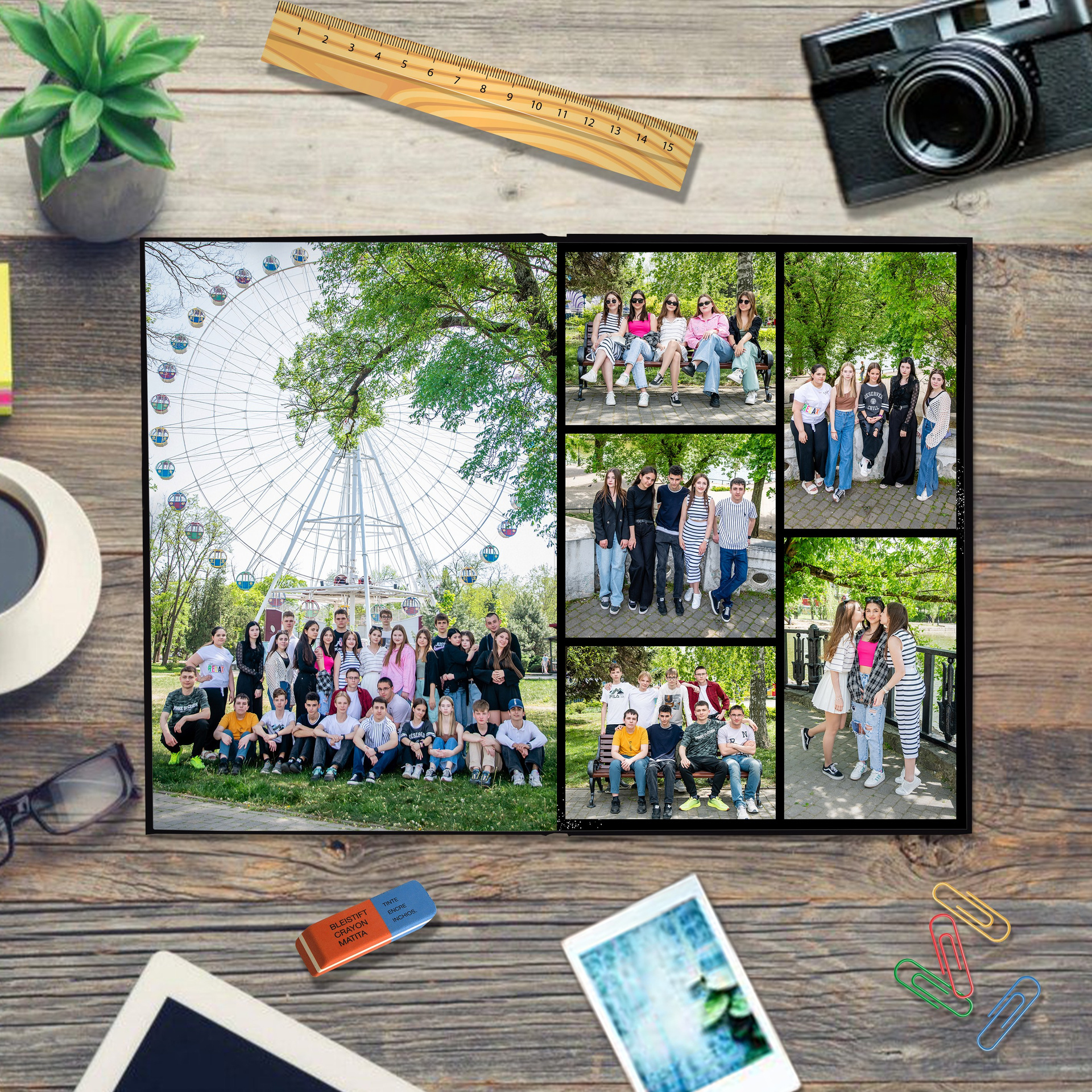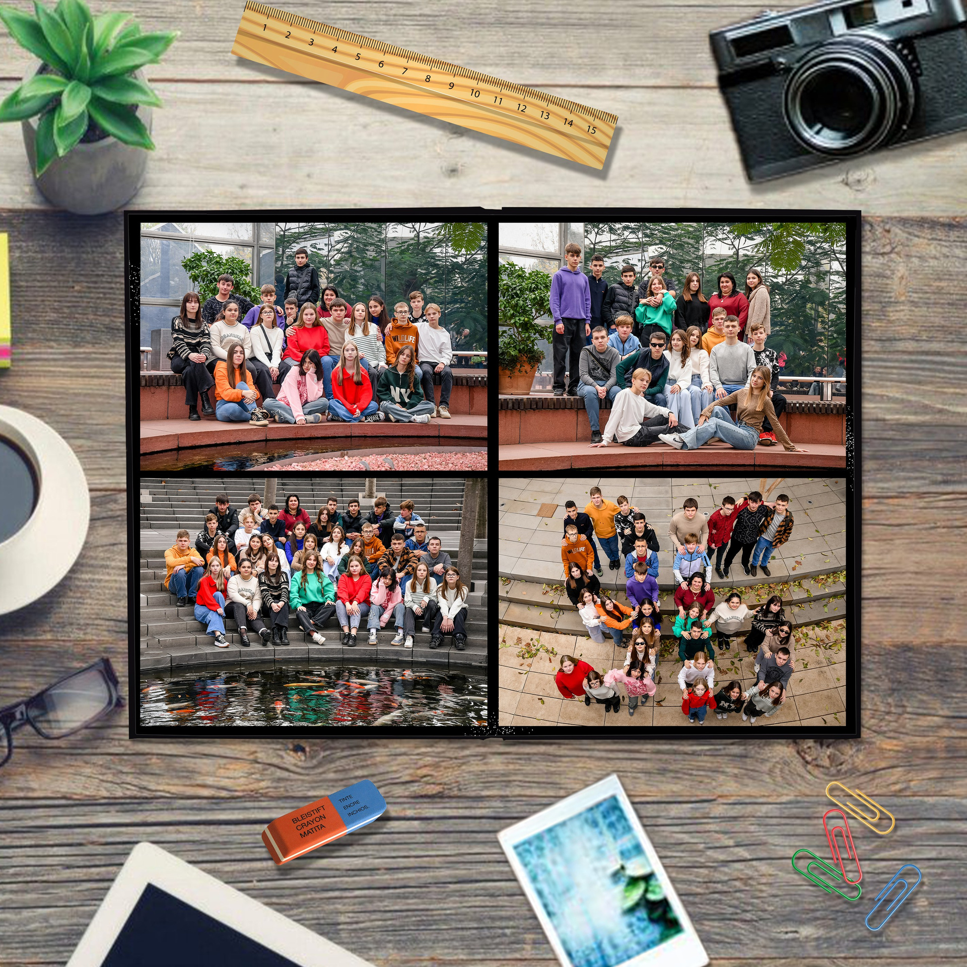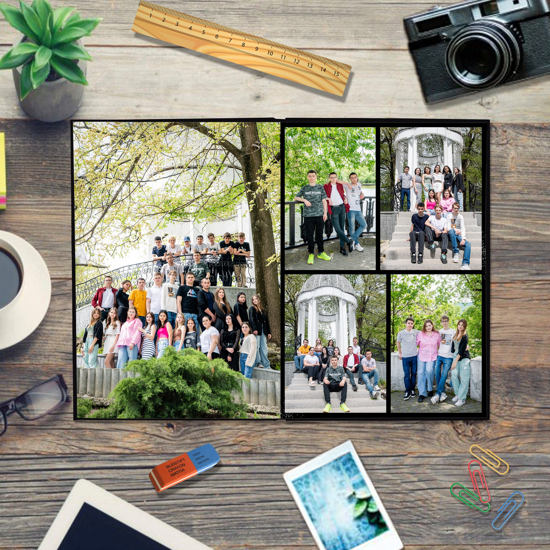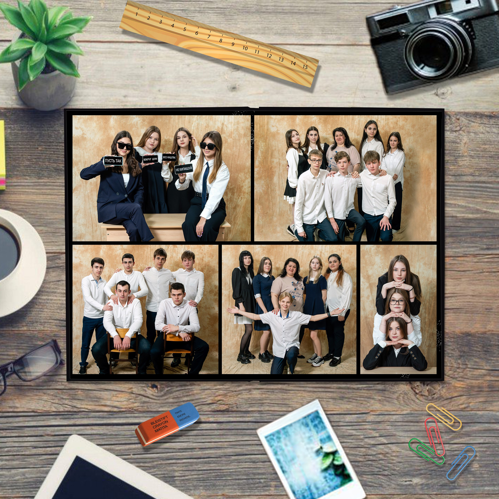 - одинадцатый-тридцатый: групповые коллажи и общие фотографии на весь разворот
