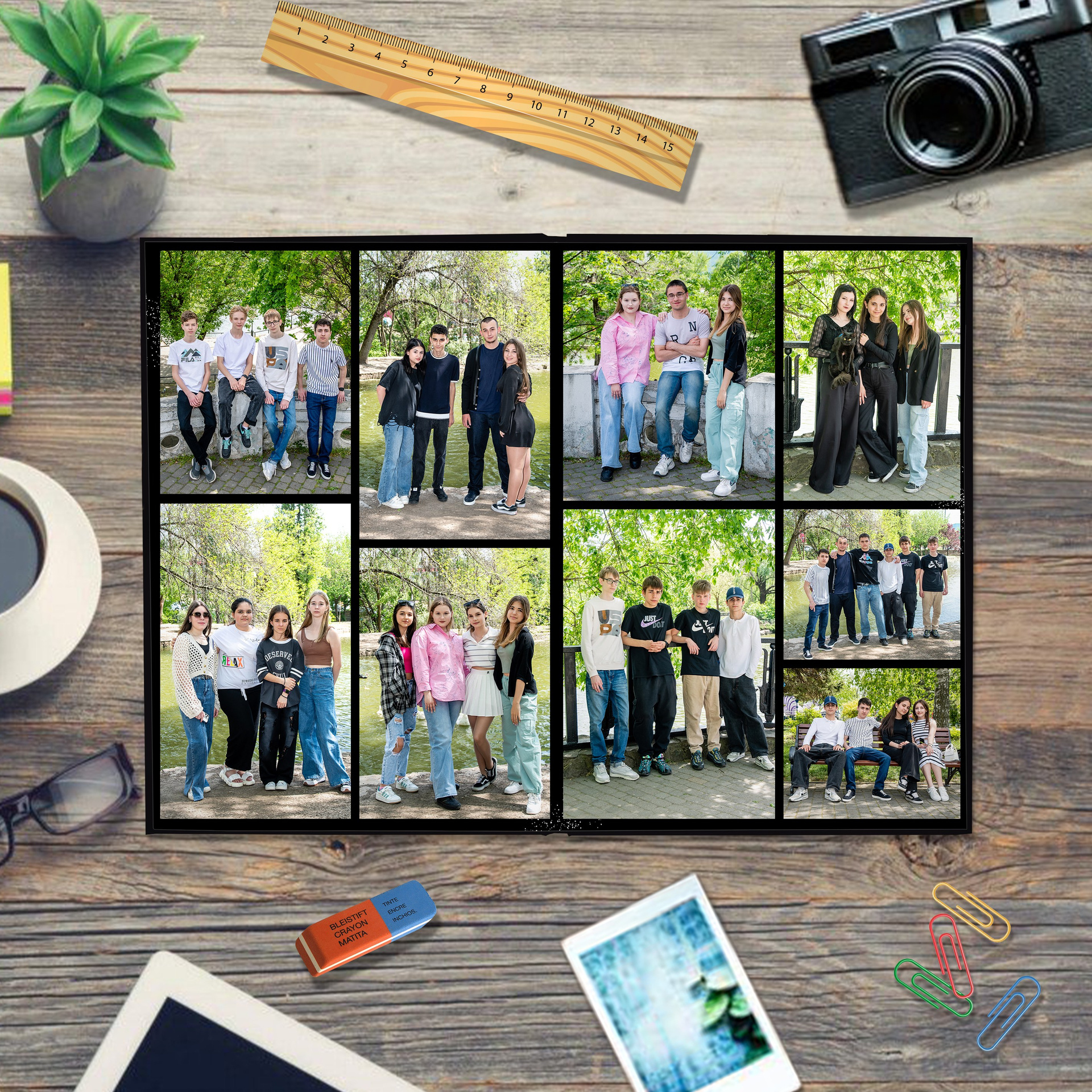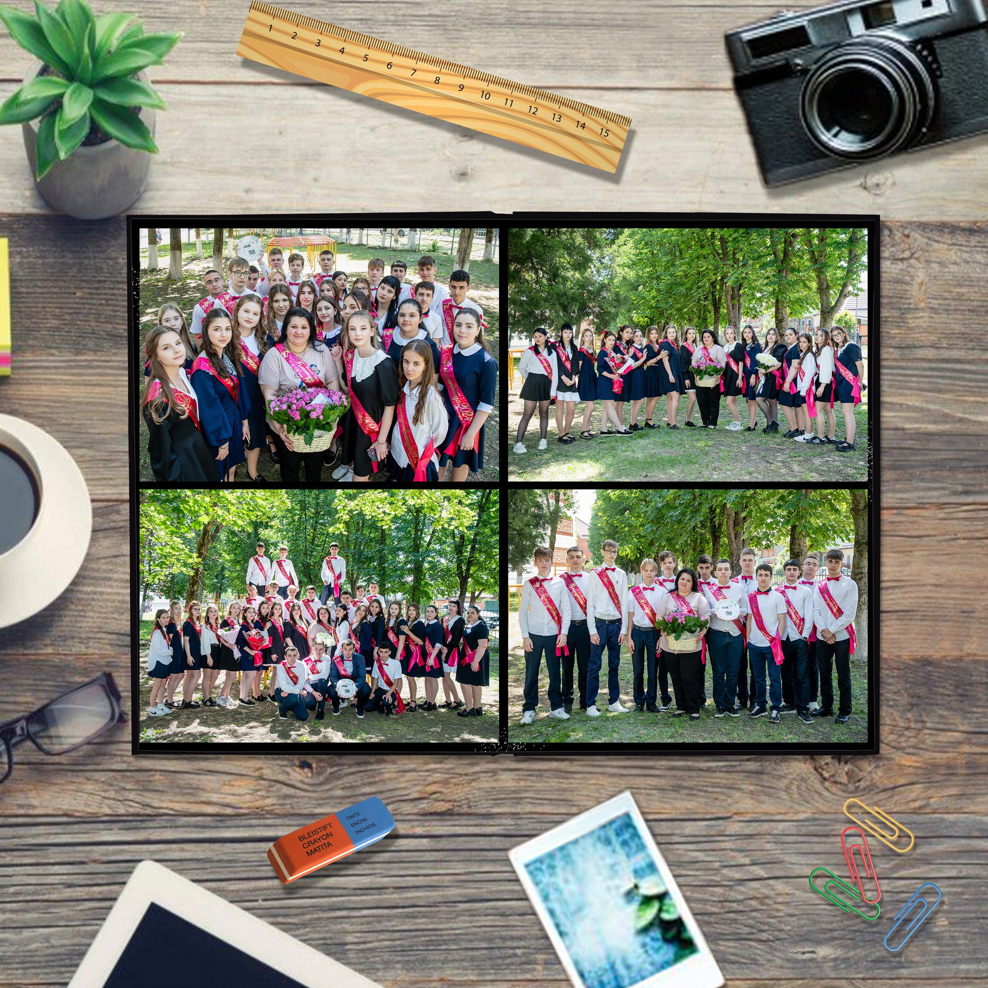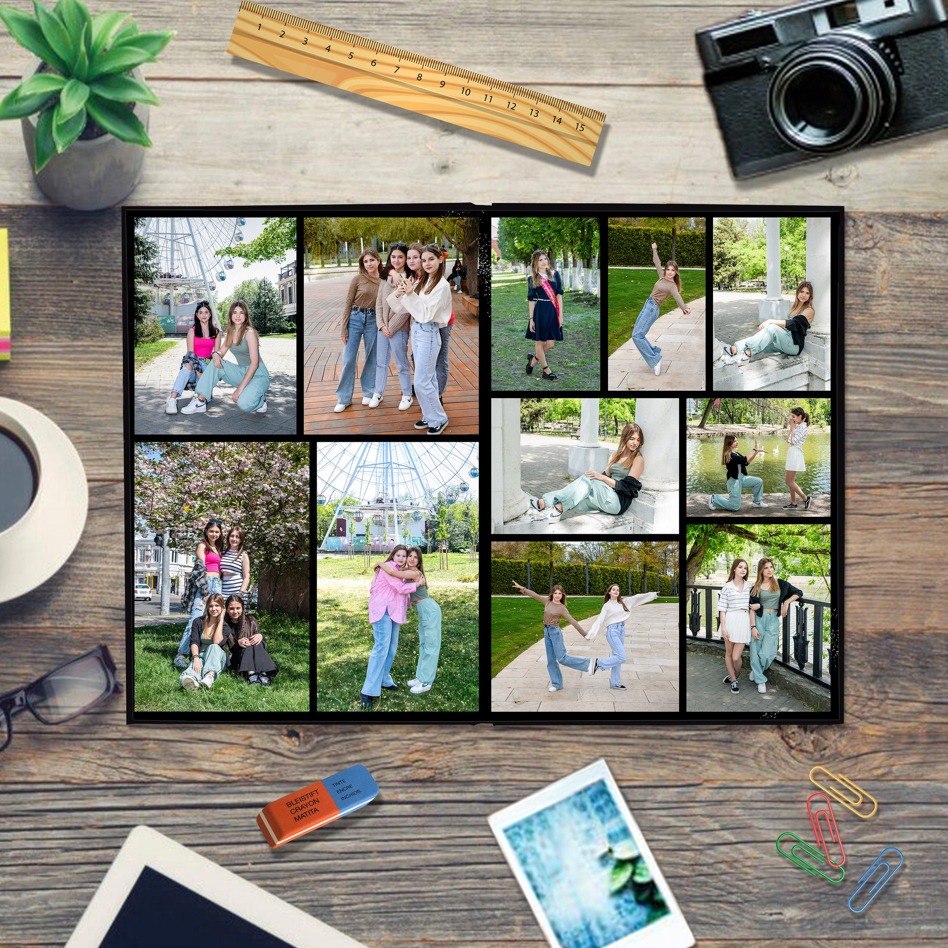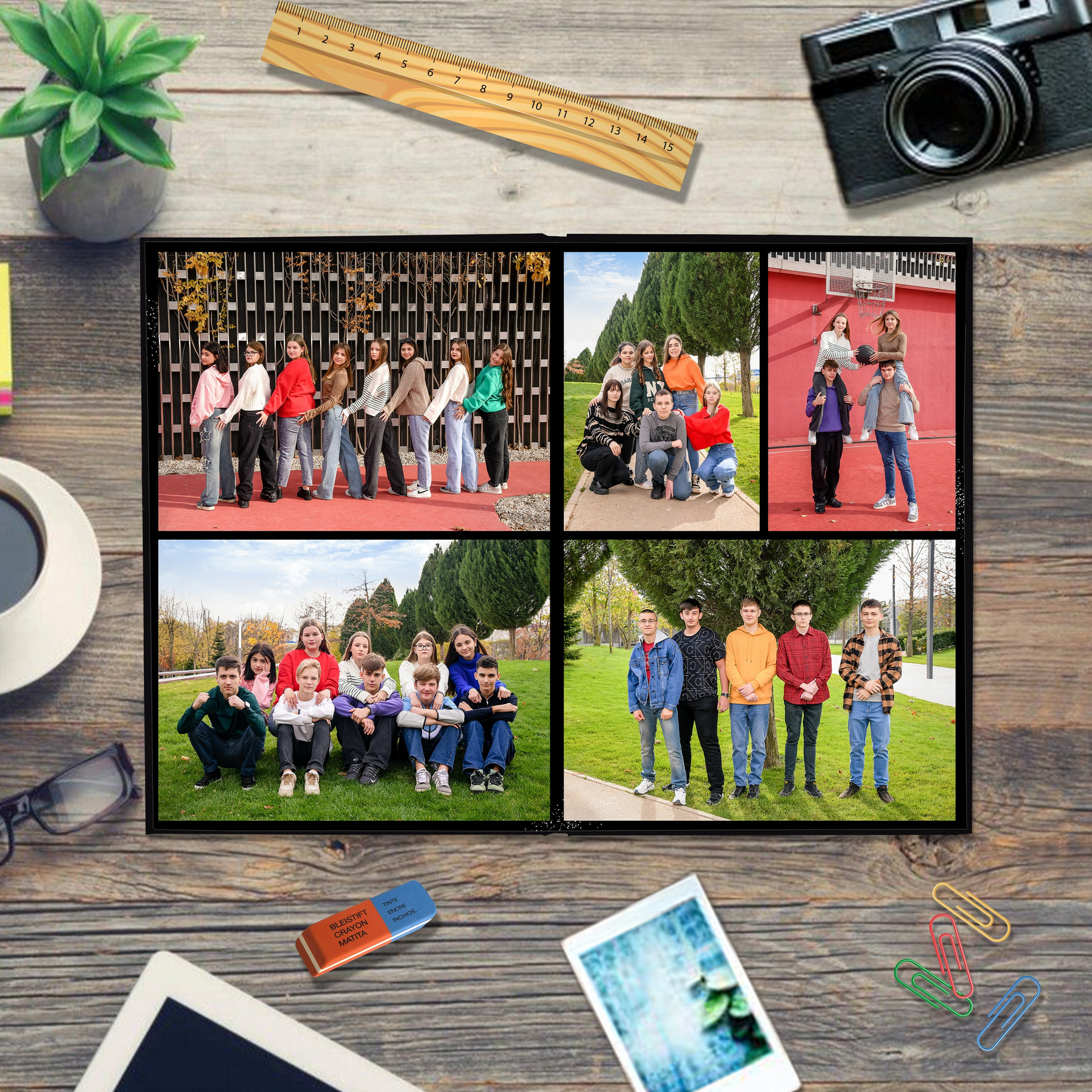 - одинадцатый-тридцатый: групповые коллажи и общие фотографии на весь разворот
