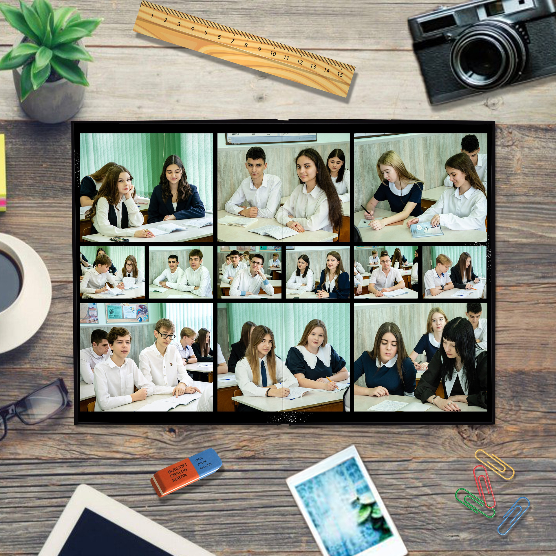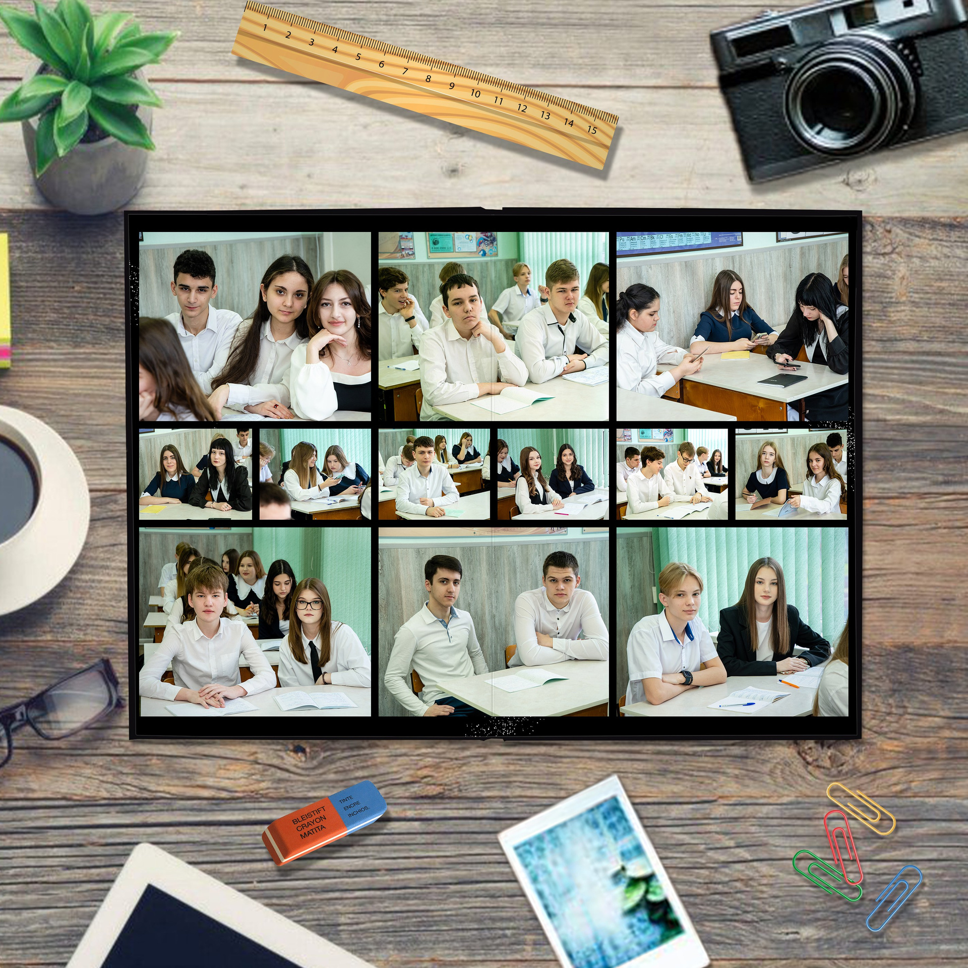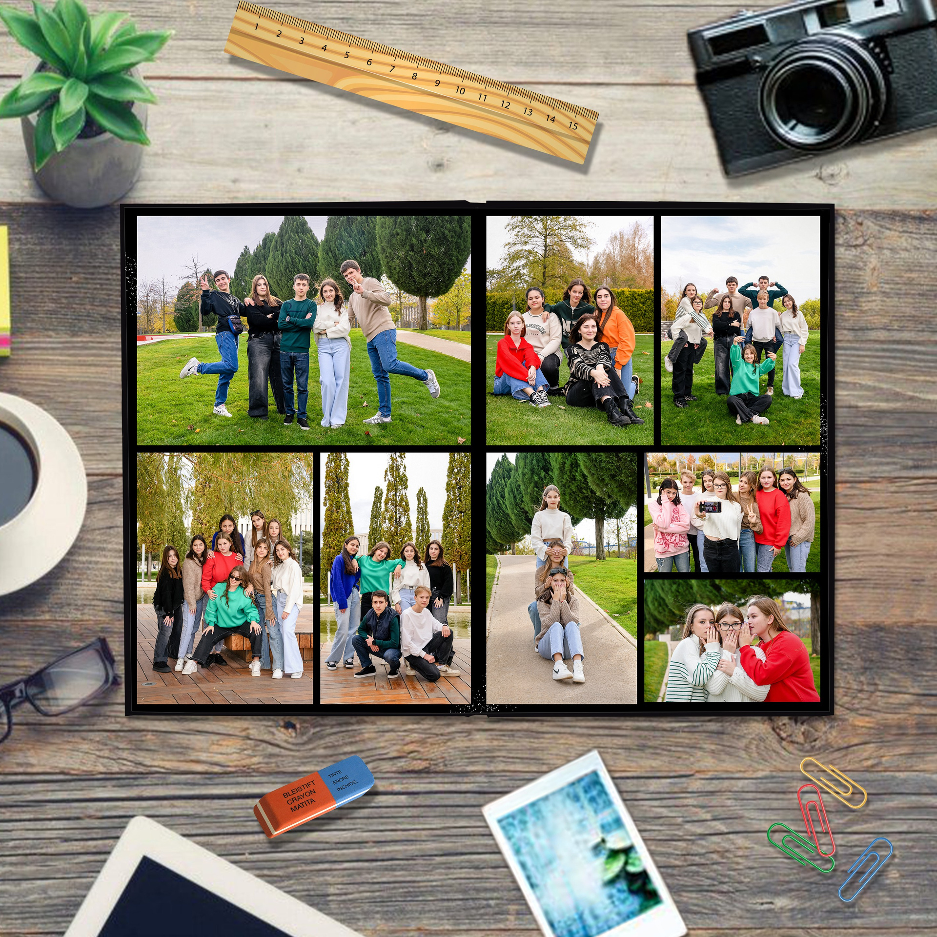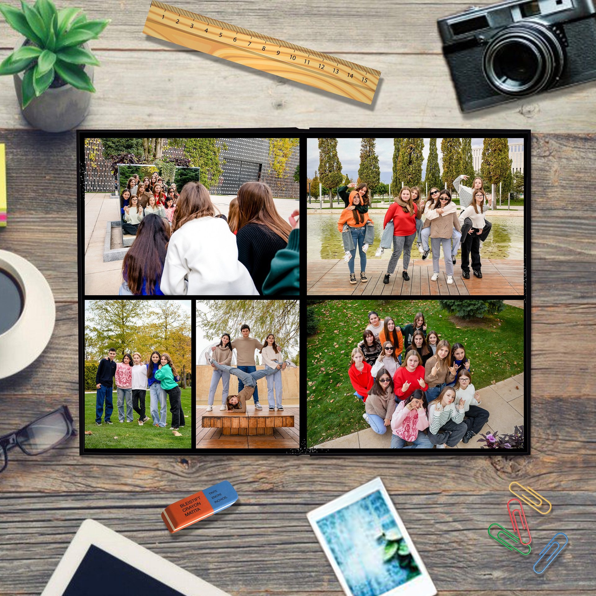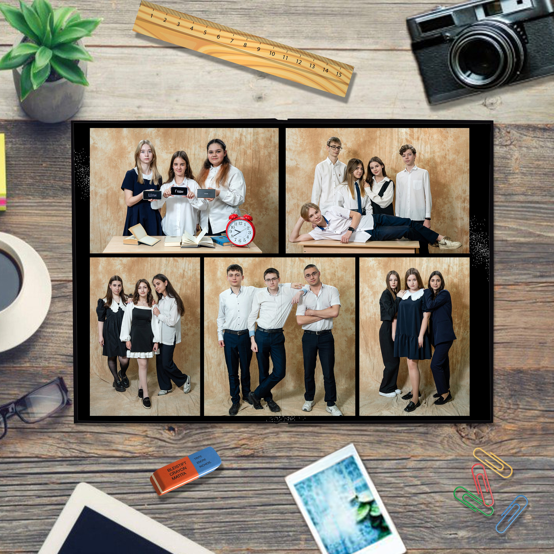 - одинадцатый-тридцатый: групповые коллажи и общие фотографии на весь разворот