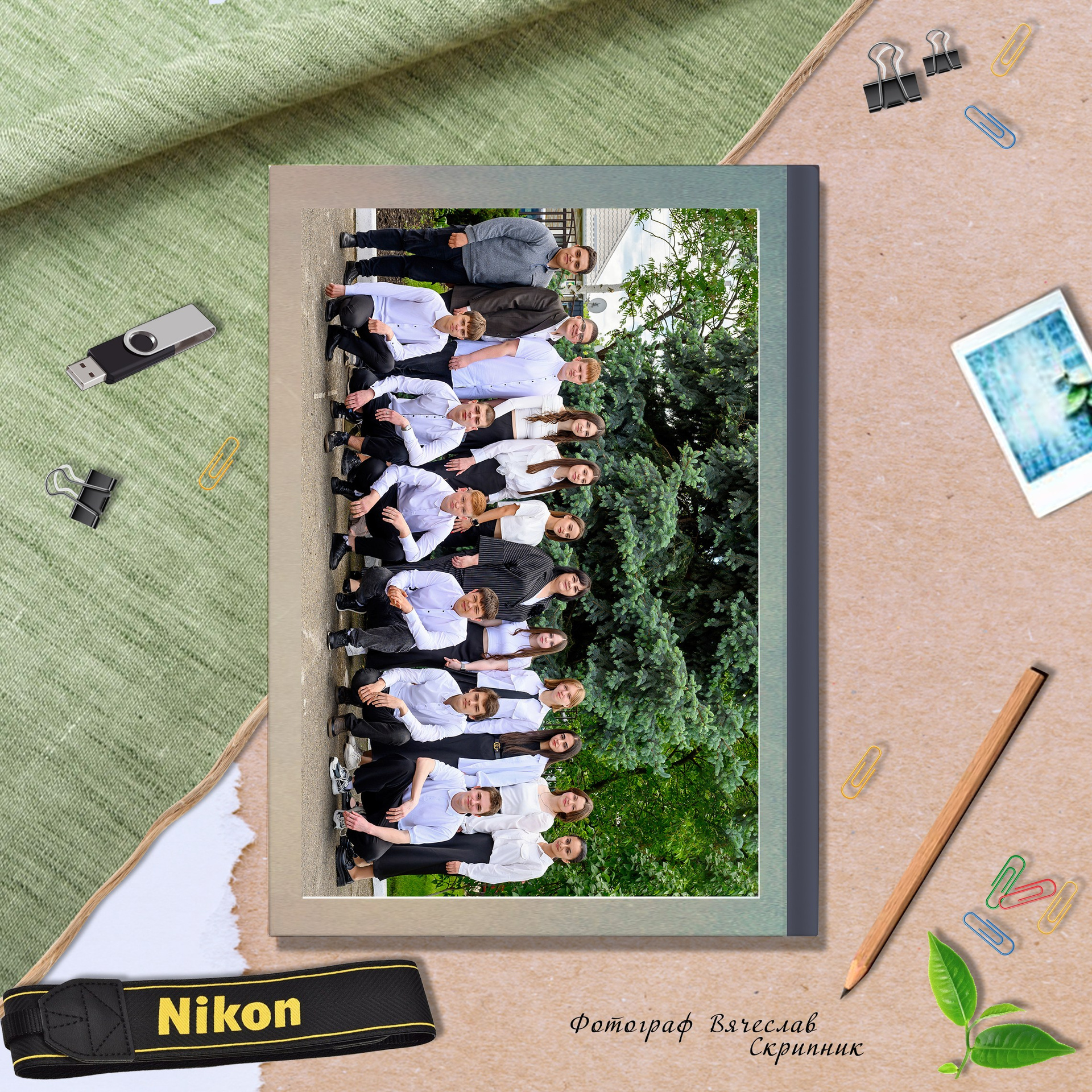 - разворот: виньетка класса с подписанными именами и фамилиями