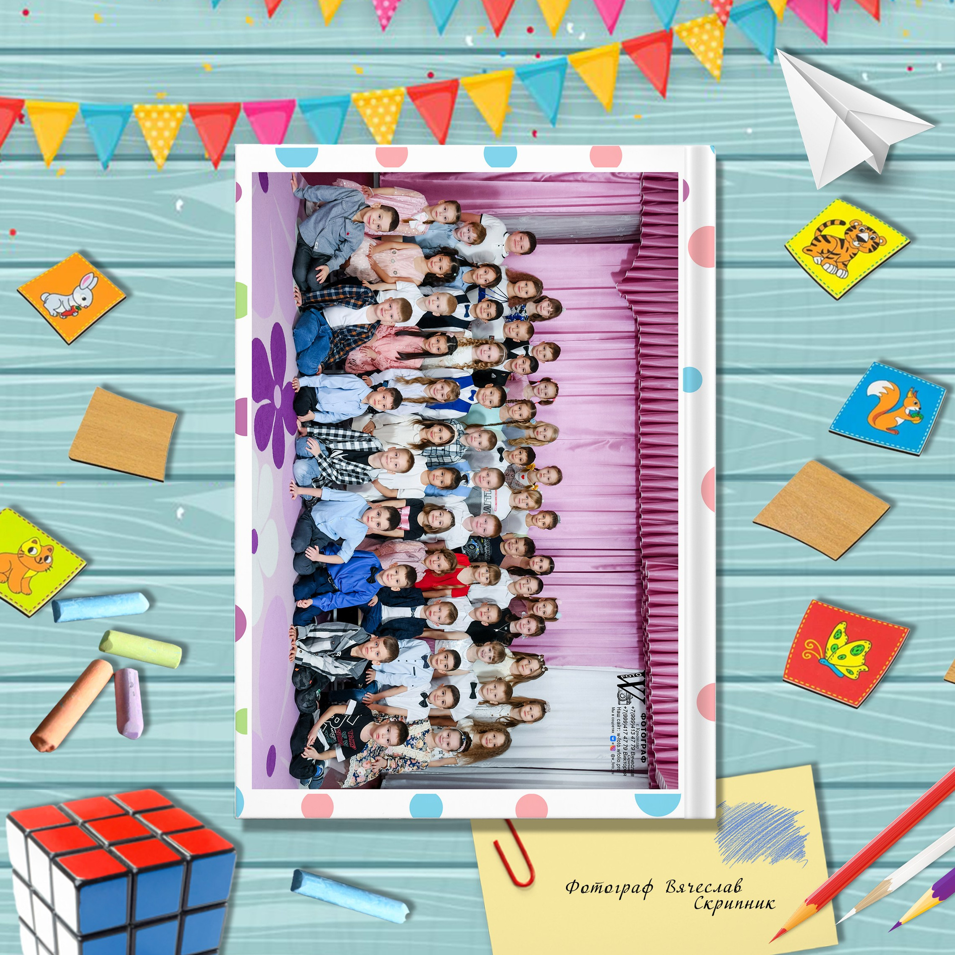 - при заказе от 20 альбомов — один альбом В ПОДАРОК (организатору) и виньетки 20×30 см. для воспитателей