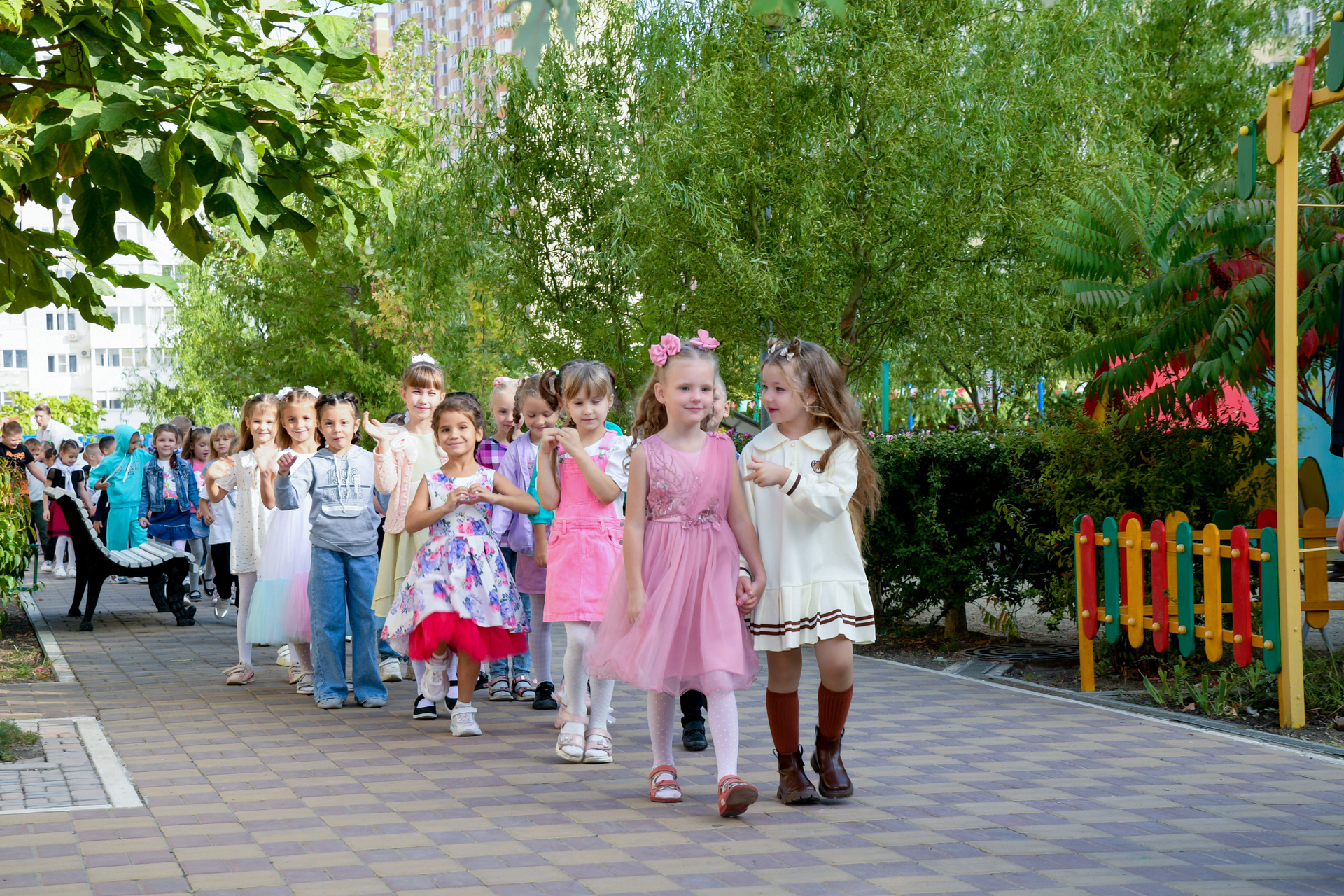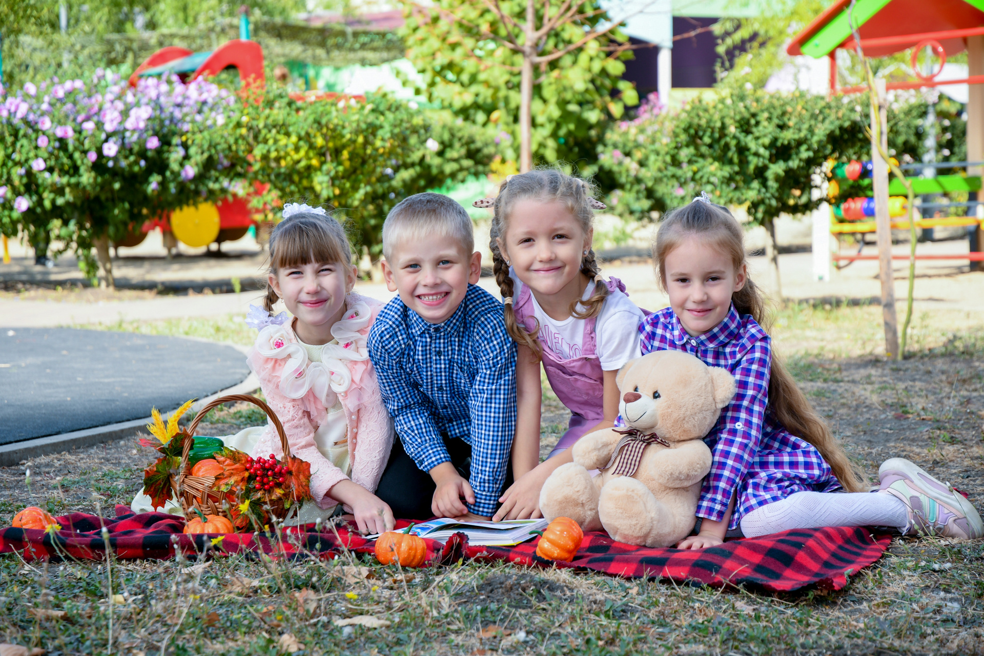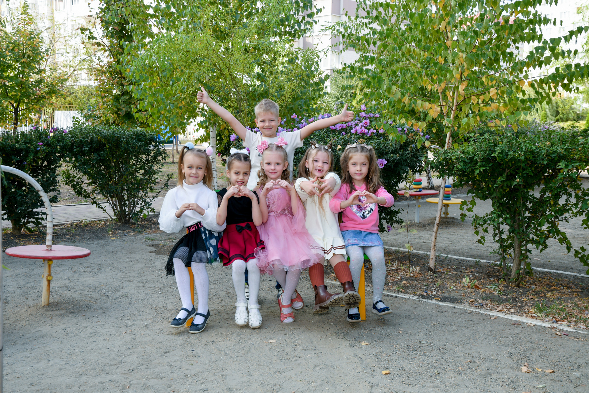 Снимки для выпускного альбома детского сада можно сделать яркие как в группе, так и на улице.