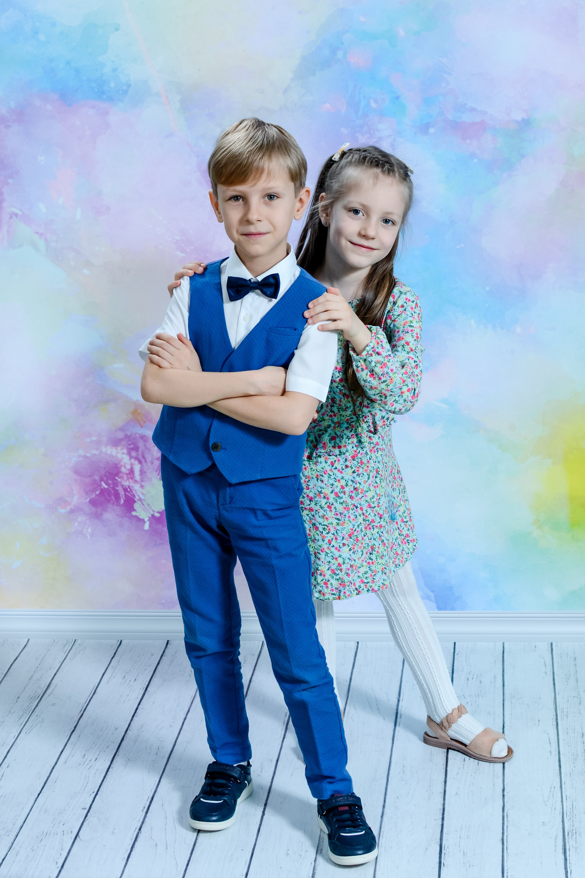 Как правило съёмка для выпускных альбомов начинается с официальной части — студийная фотосессия.
