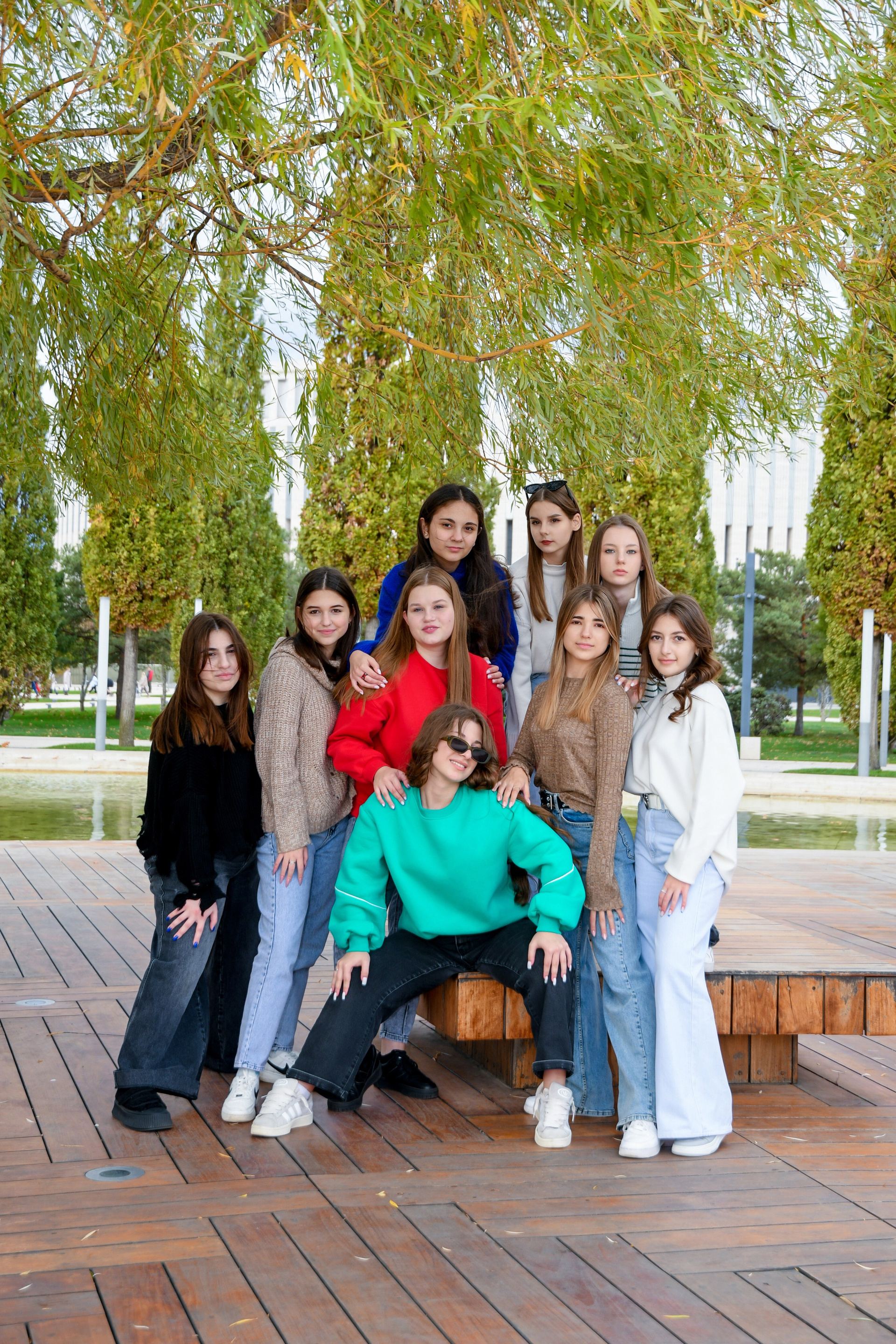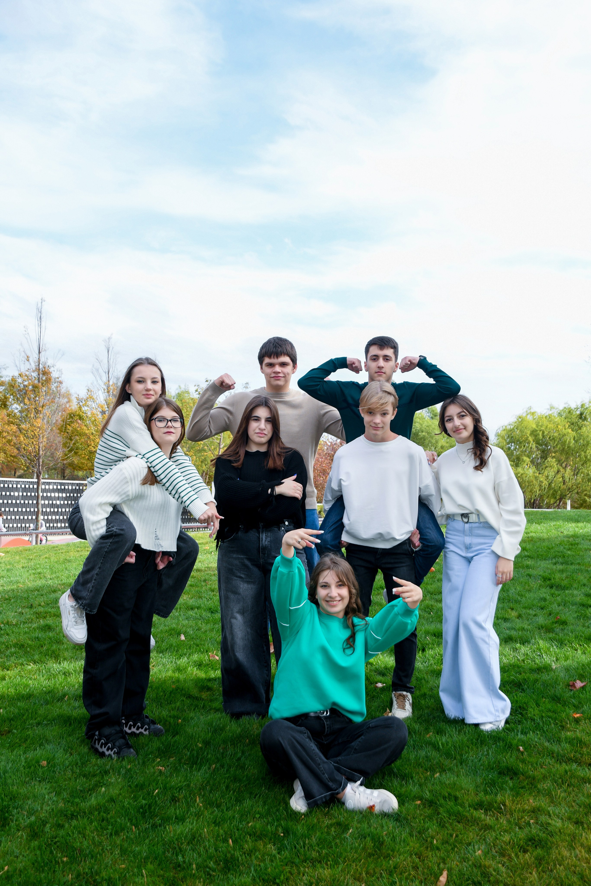 Ещё одна дружная весёлая группа выпускников успела сфотографироваться в тёплые осенние денёчки.