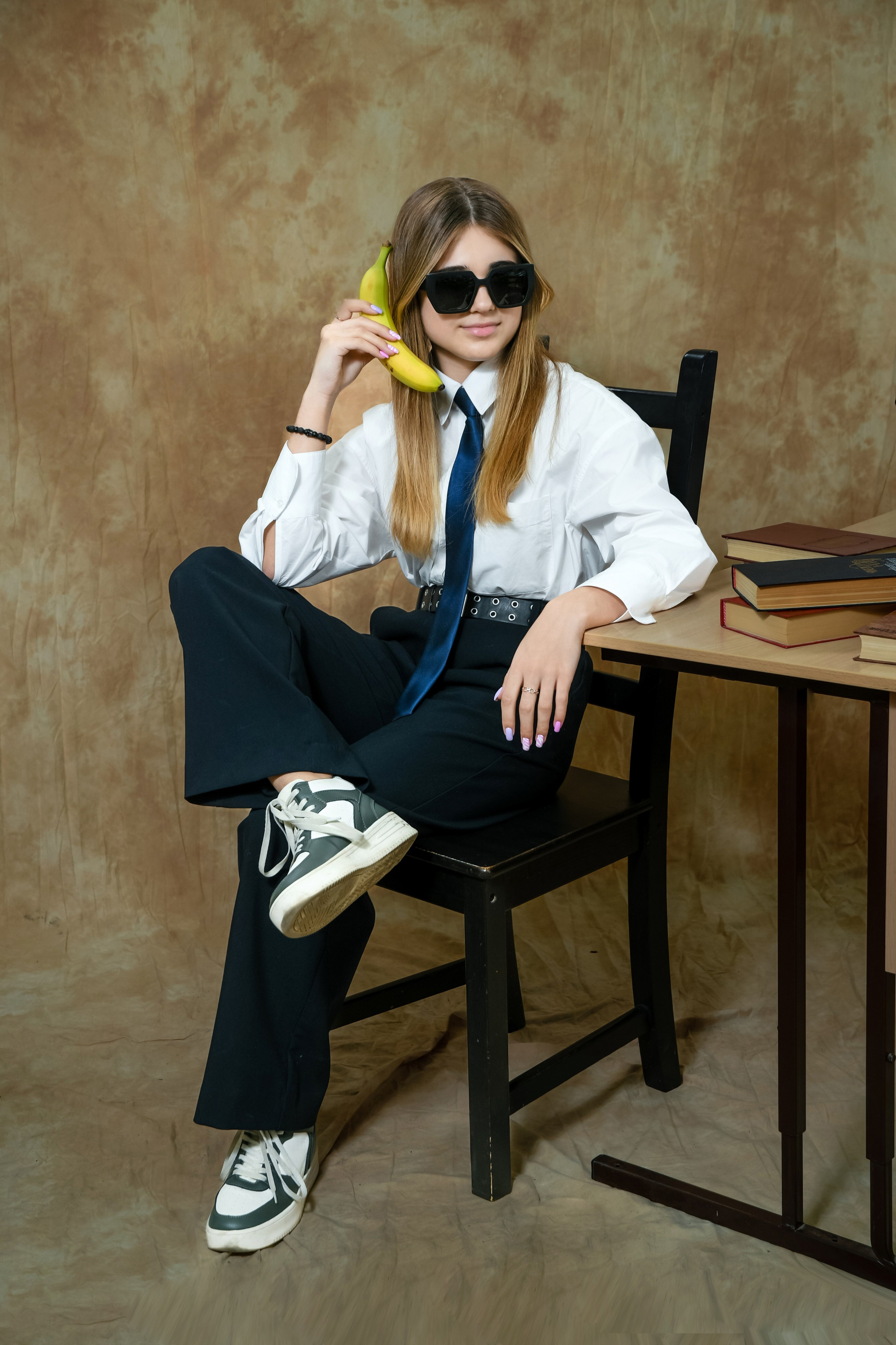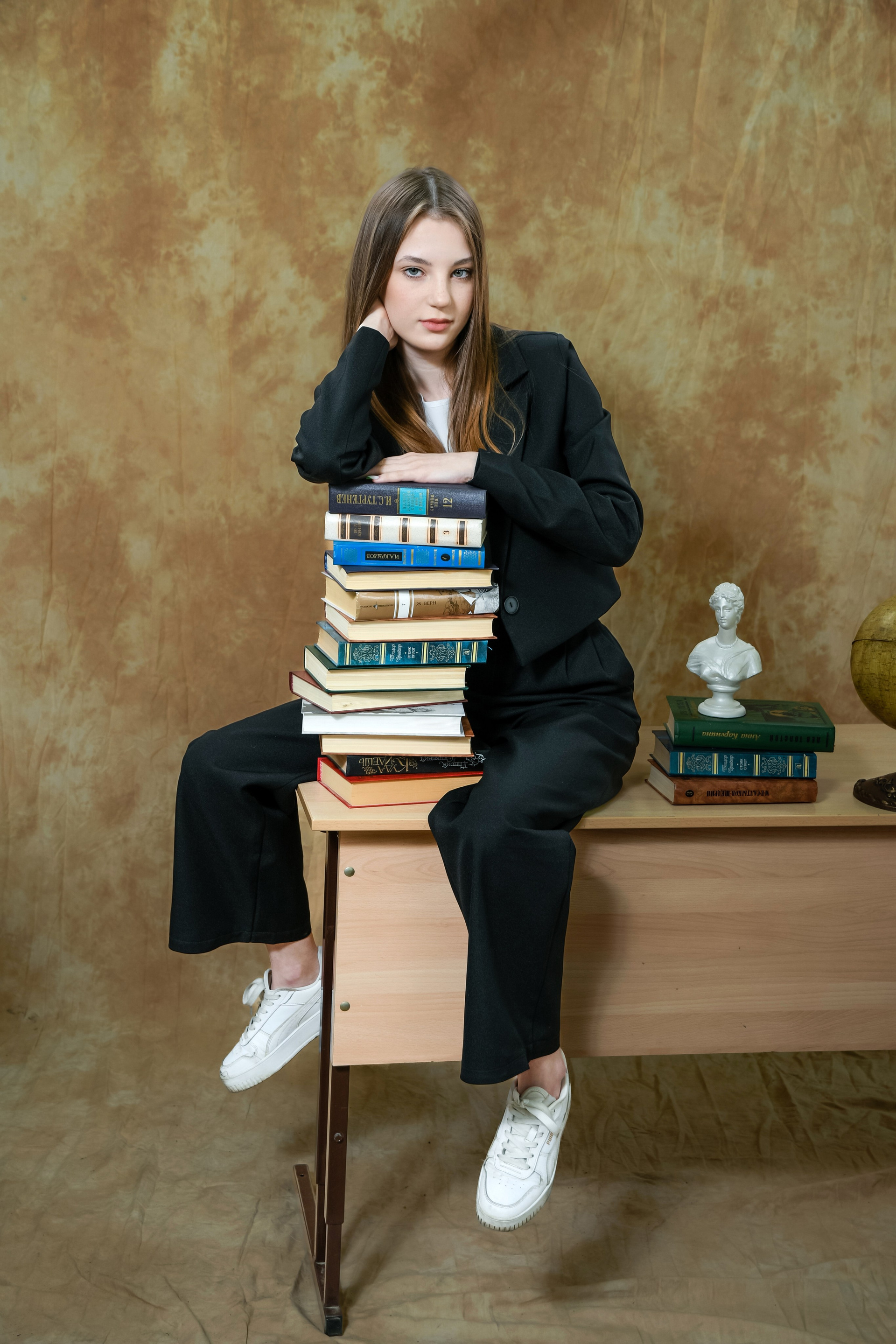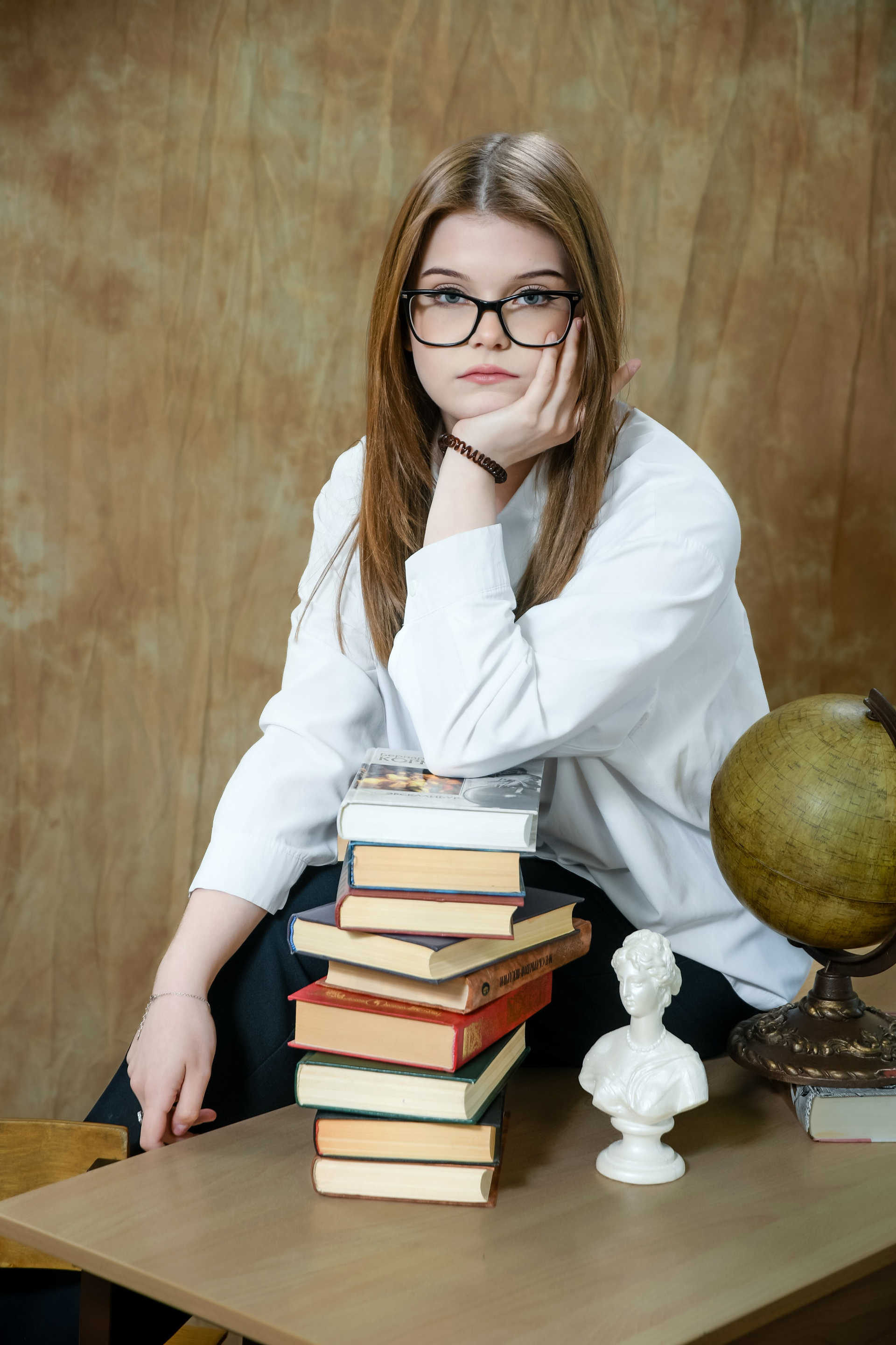 Как правило съёмка для выпускных альбомов начинается с официальной части — студийная фотосессия.