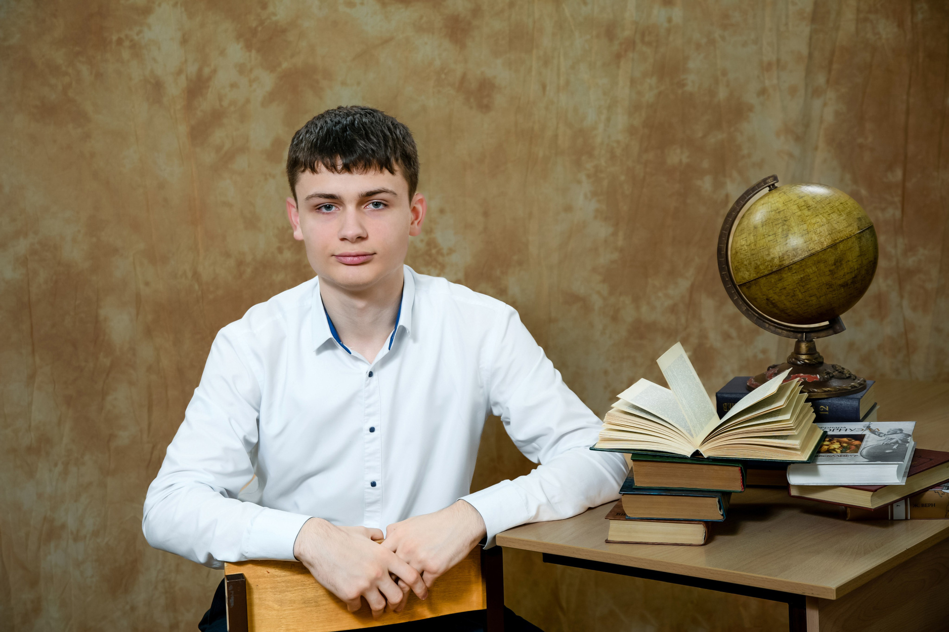 Один из этапов фотосъёмки для выпускных альбомов — это студийная фотосессия.